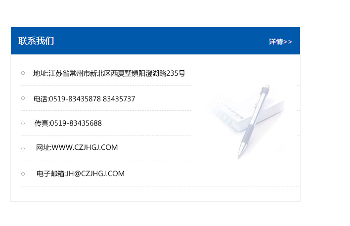 傳真:0519-83435688    郵編:213135    網址:WWW.czjhgj_com.xdss168.com    電子郵箱:JH@czjhgj_com.xdss168.com